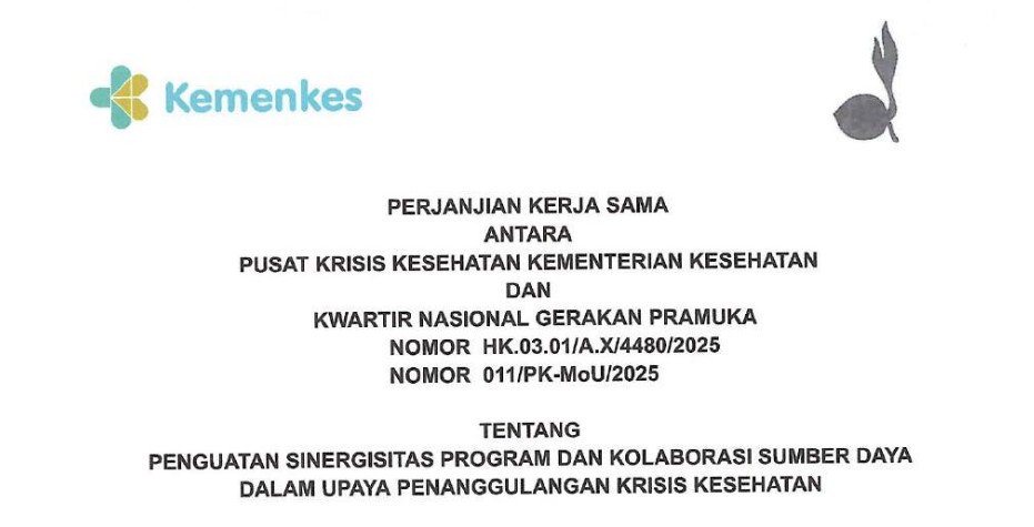 Disini anda dapat mengunduh Perjanjian Kerjasama antara Pusat Krisis Kesehatan dan Kwartir Nasional Gerakan Pramuka tahun 2025Download