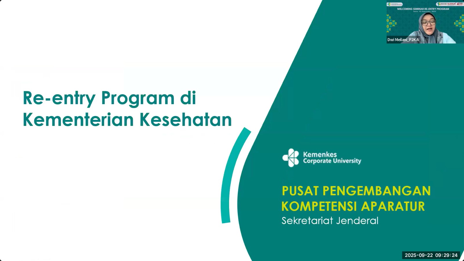 Jakarta, 22 September 2025 – Kementerian Kesehatan melalui Pusat Pengembangan Kompetensi Aparatur menyelenggarakan Welcoming Seminar Re-entry Program seba...