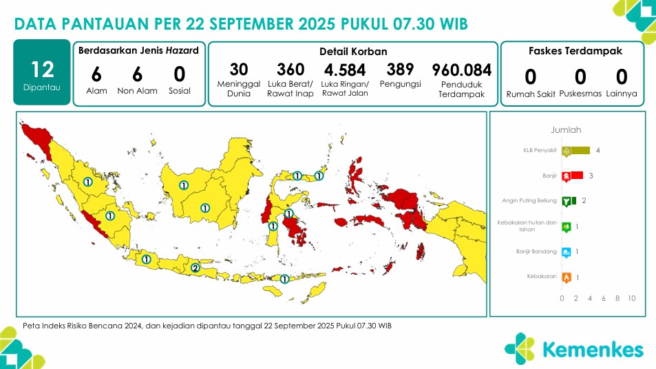 Disini anda dapat mengunduh laporan pemantauan harian berpotensi kejadian Krisis Kesehatan tanggal 22 September 2025