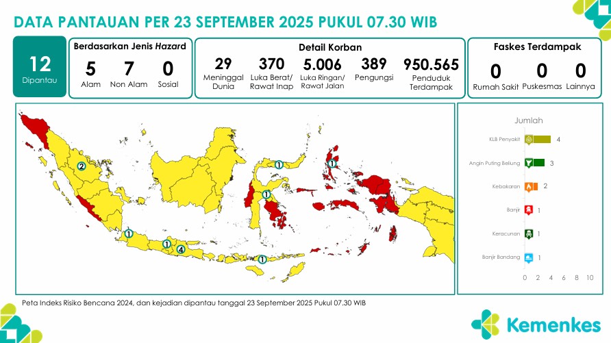 Disini anda dapat mengunduh laporan pemantauan harian berpotensi kejadian Krisis Kesehatan tanggal 23 September 2025