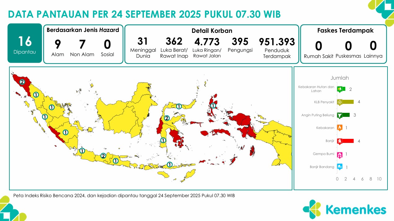 Disini anda dapat mengunduh laporan pemantauan harian berpotensi kejadian Krisis Kesehatan tanggal 24 September 2025