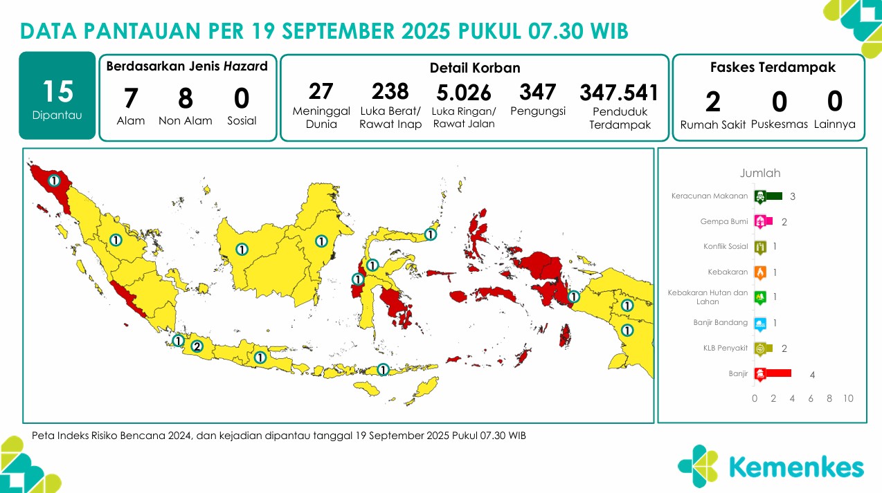 Disini anda dapat mengunduh laporan pemantauan harian berpotensi kejadian Krisis Kesehatan tanggal 19 September 2025