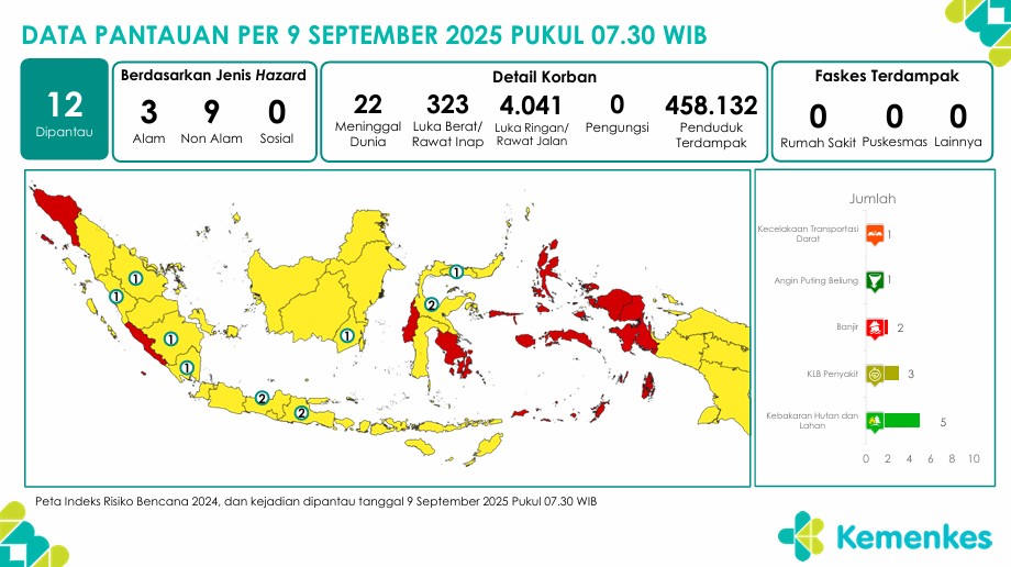 Disini anda dapat mengunduh laporan pemantauan harian berpotensi kejadian Krisis Kesehatan tanggal 9 September 2025