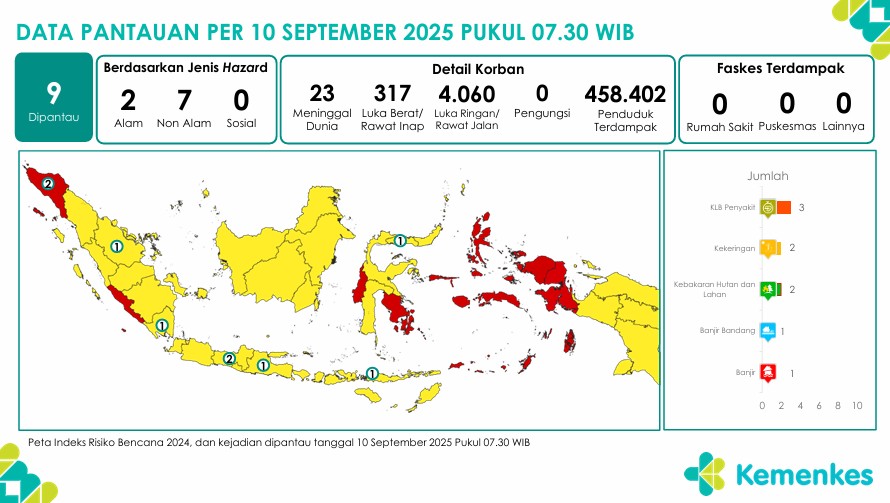 Disini anda dapat mengunduh laporan pemantauan harian berpotensi kejadian Krisis Kesehatan tanggal 10 September 2025