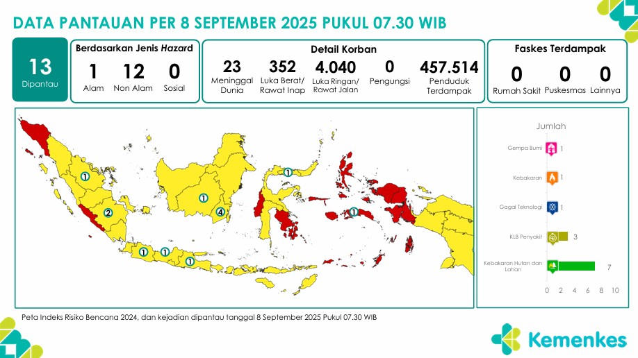 Disini anda dapat mengunduh laporan pemantauan harian berpotensi kejadian Krisis Kesehatan tanggal 8 September 2025