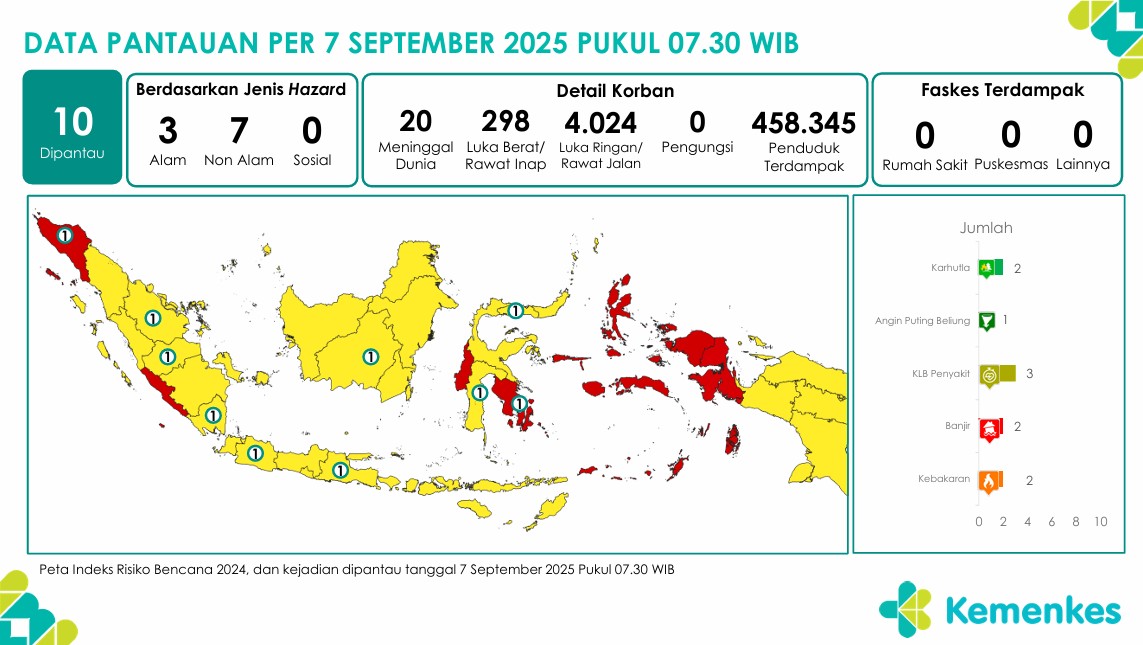 Disini anda dapat mengunduh laporan pemantauan harian berpotensi kejadian Krisis Kesehatan tanggal 7 September 2025