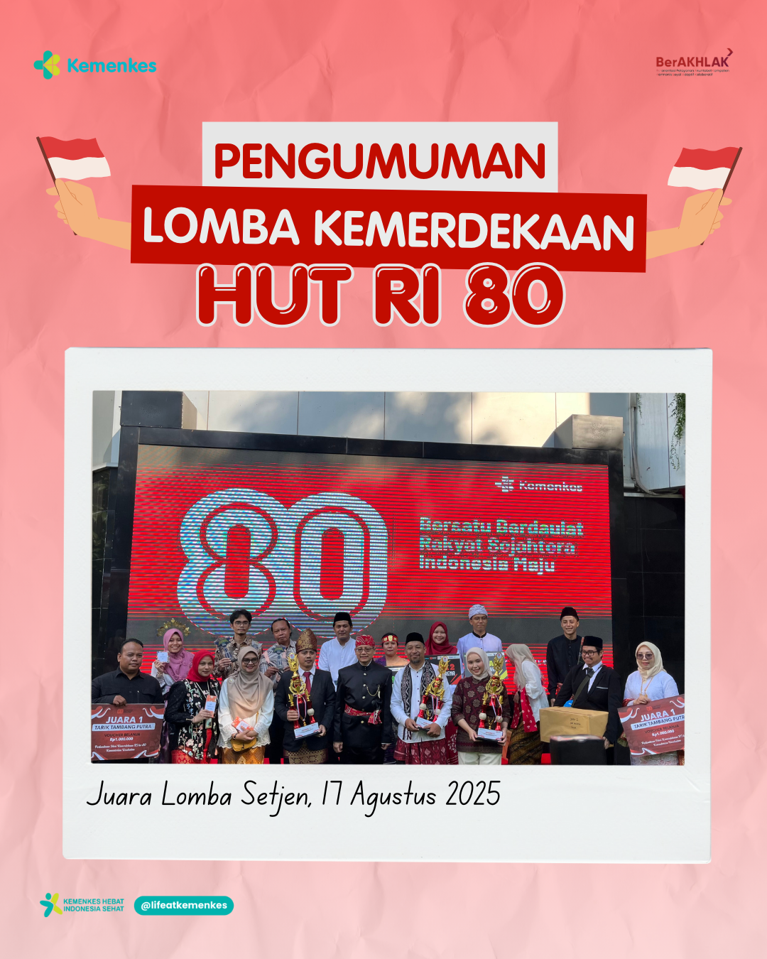 Jakarta, 17 Agustus 2025Dalam rangka memperingati Hari Ulang Tahun ke-80 Kemerdekaan Republik Indonesia, Kementerian Kesehatan melalui Sekretariat Jenderal mengadakan Lomba Kemerdekaan di l...
