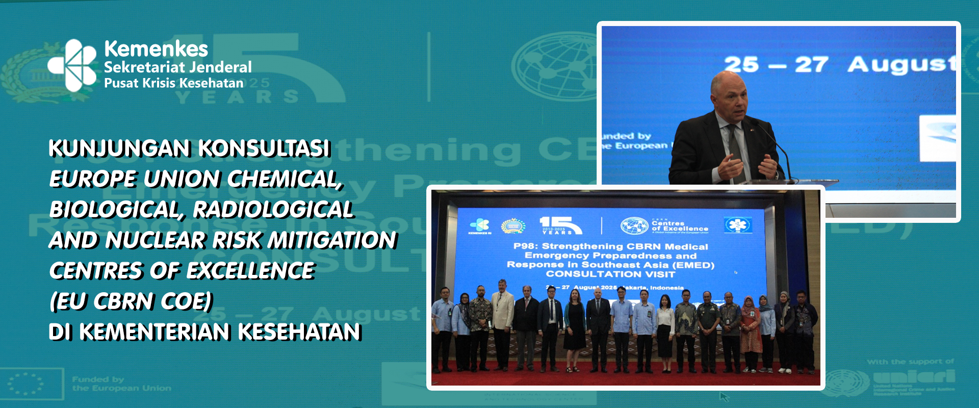 Pada tanggal 25 Agustus 2025, Kemenkes menjadi tuan rumah kegiatan kunjungan konsultasi Europe Union Chemical, Biological, Radiological and Nuclear Risk Mitigation Centres of Excellence (EU CBRN Co...