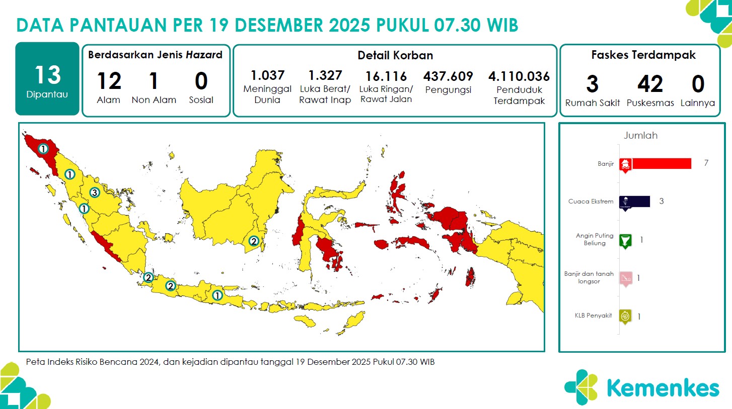 Disini anda dapat mengunduh laporan pemantauan harian berpotensi kejadian Krisis Kesehatan tanggal 19 Desember 2025 Lihat Laporan Pemantauan Harian Pusat Krisis Kesehatan 19 Desember 2025