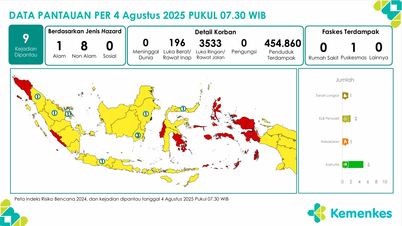 Disini anda dapat mengunduh laporan pemantauan harian berpotensi kejadian Krisis Kesehatan tanggal 4 Agustus 2025