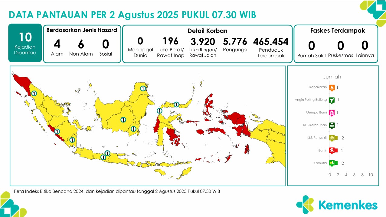 Disini anda dapat mengunduh laporan pemantauan harian berpotensi kejadian Krisis Kesehatan tanggal 2 Agustus 2025
