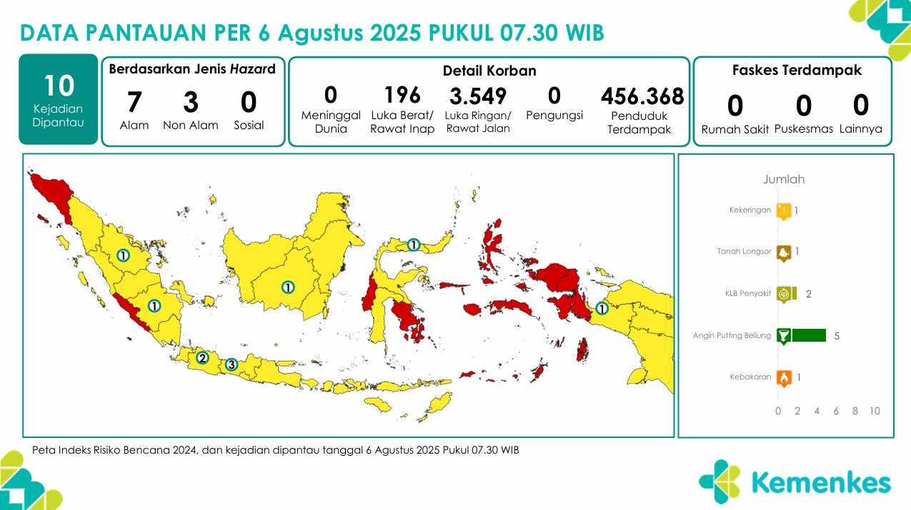 Disini anda dapat mengunduh laporan pemantauan harian berpotensi kejadian Krisis Kesehatan tanggal 6 Agustus 2025