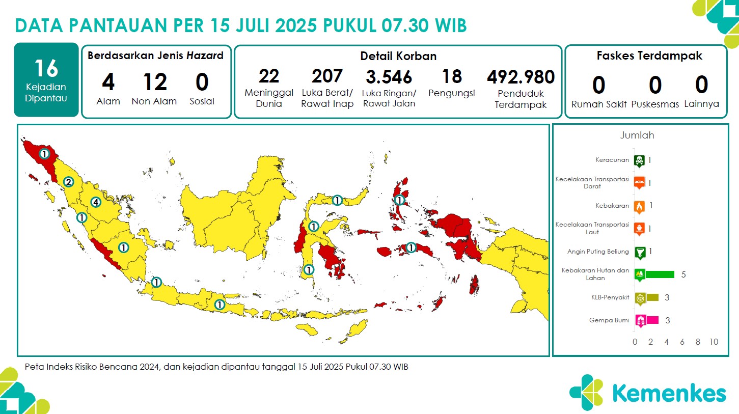Disini anda dapat mengunduh laporan pemantauan harian berpotensi kejadian Krisis Kesehatan tanggal 15 Juli 2025