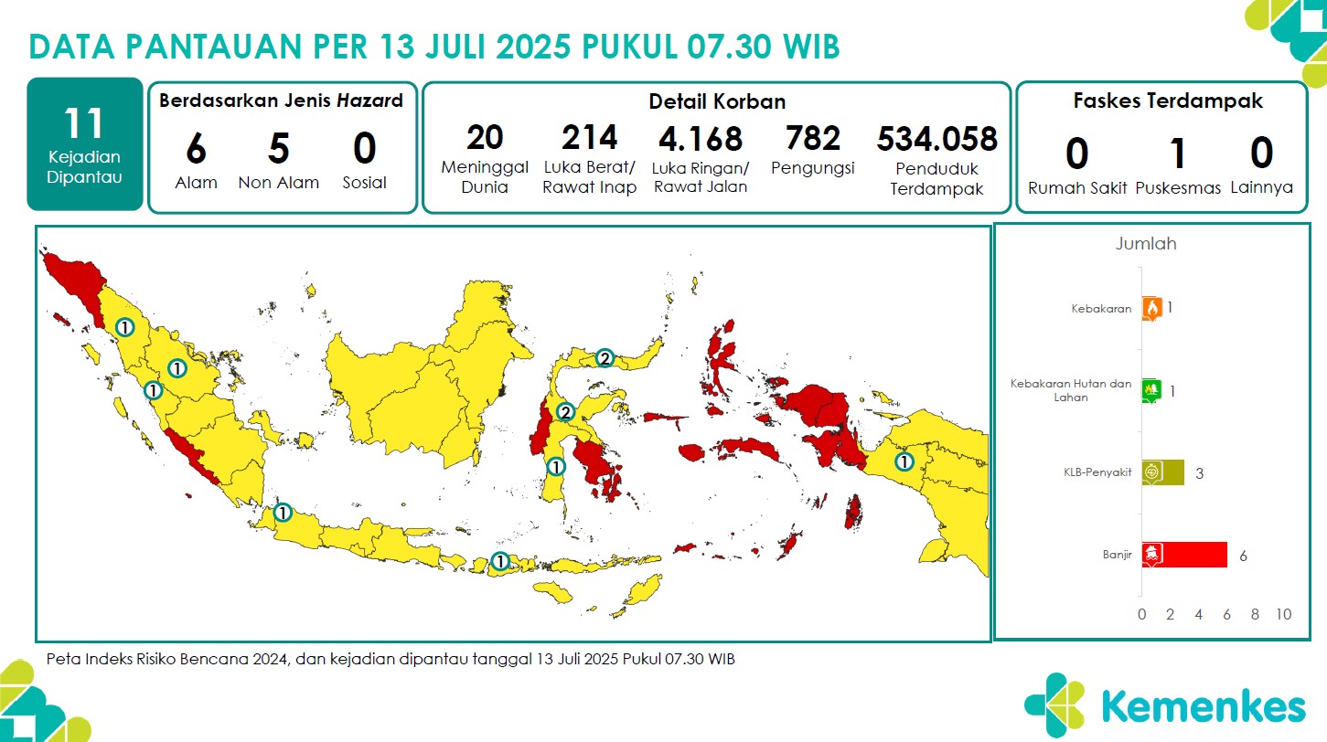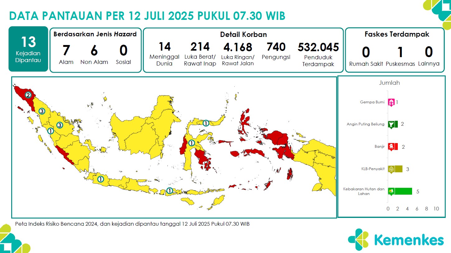 Disini anda dapat mengunduh laporan pemantauan harian berpotensi kejadian Krisis Kesehatan tanggal 13 Juli 2025