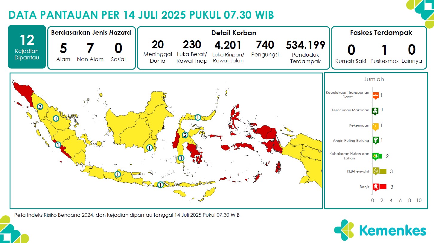 Disini anda dapat mengunduh laporan pemantauan harian berpotensi kejadian Krisis Kesehatan tanggal 14 Juli 2025