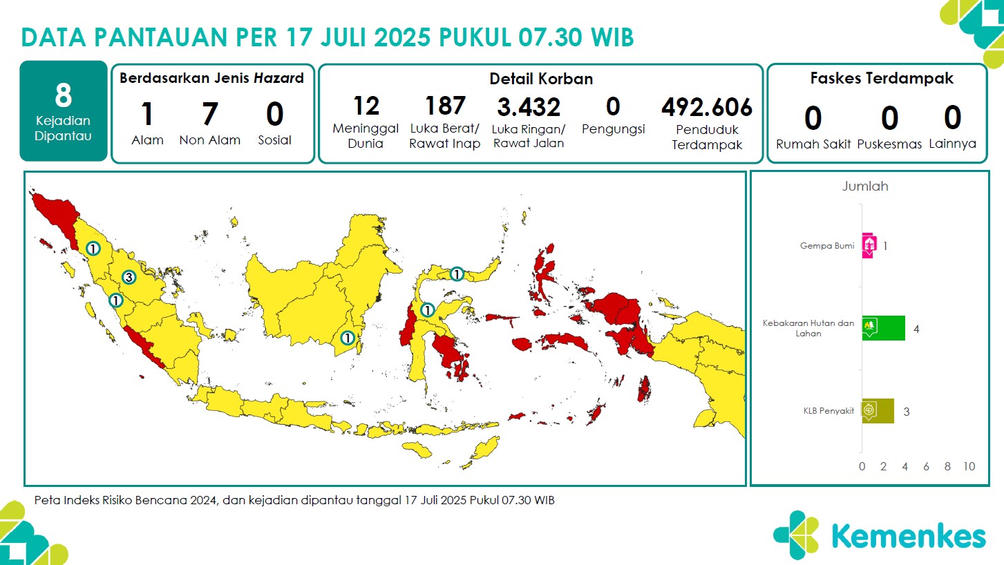 Disini anda dapat mengunduh laporan pemantauan harian berpotensi kejadian Krisis Kesehatan tanggal 17 Juli 2025