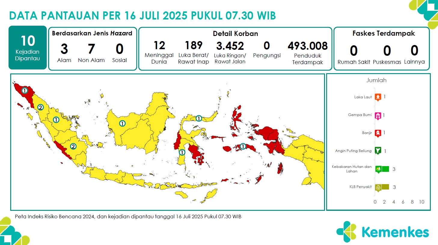 Disini anda dapat mengunduh laporan pemantauan harian berpotensi kejadian Krisis Kesehatan tanggal 16 Juli 2025
