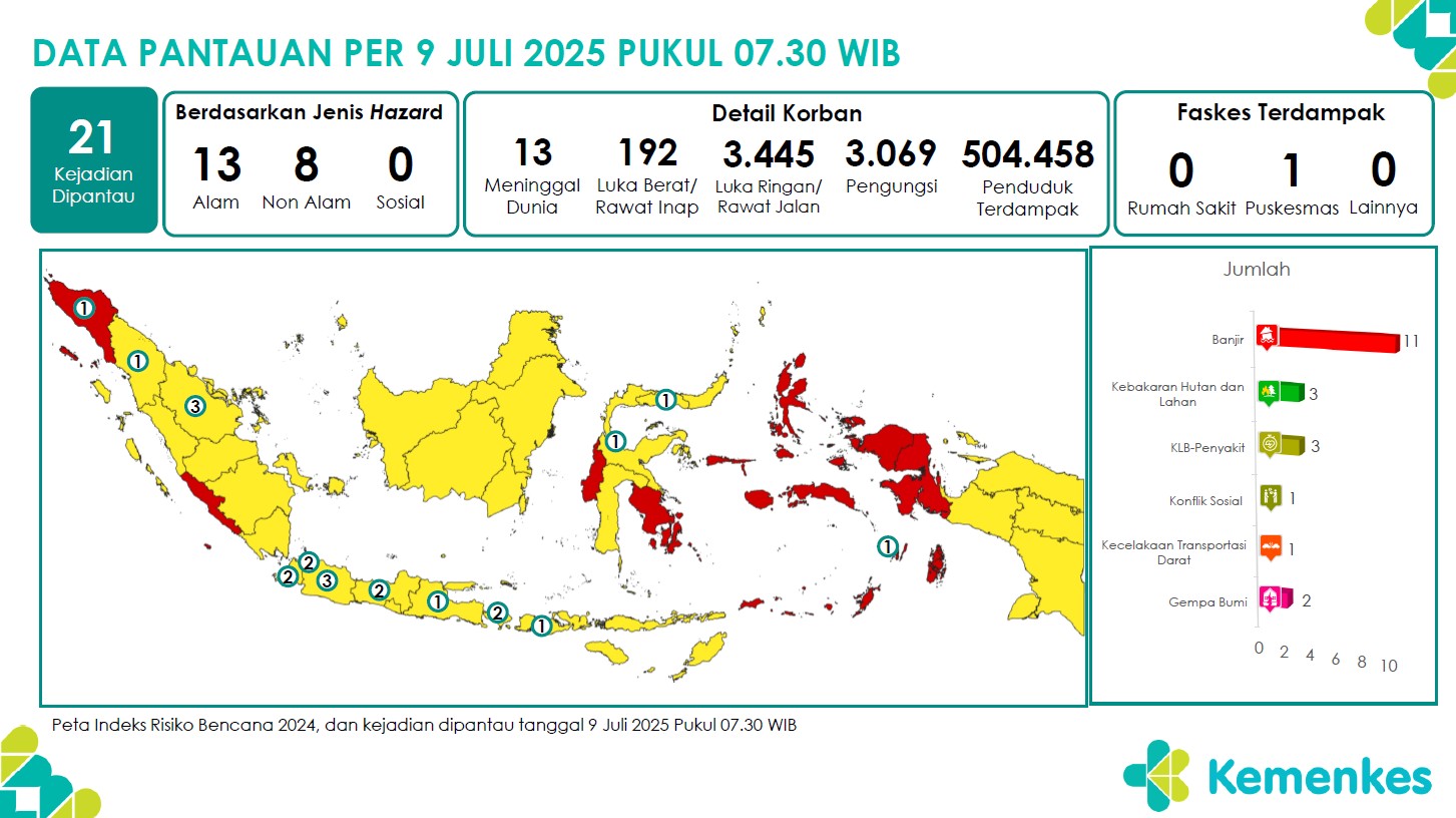 Disini anda dapat mengunduh laporan pemantauan harian berpotensi kejadian Krisis Kesehatan tanggal 9 Juli 2025