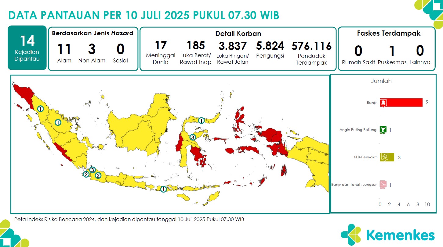Disini anda dapat mengunduh laporan pemantauan harian berpotensi kejadian Krisis Kesehatan tanggal 10 Juli 2025