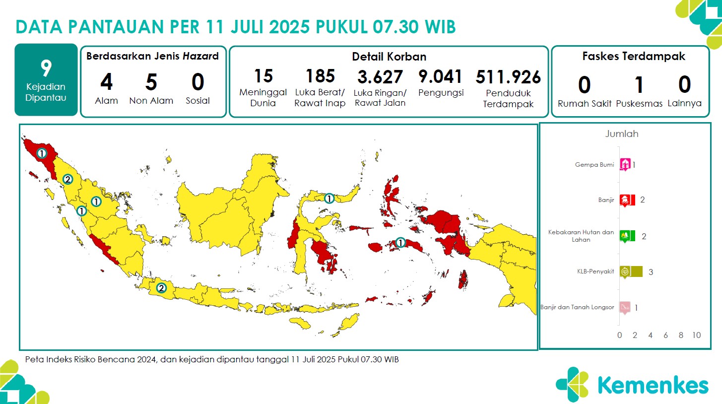 Disini anda dapat mengunduh laporan pemantauan harian berpotensi kejadian Krisis Kesehatan tanggal 11 Juli 2025