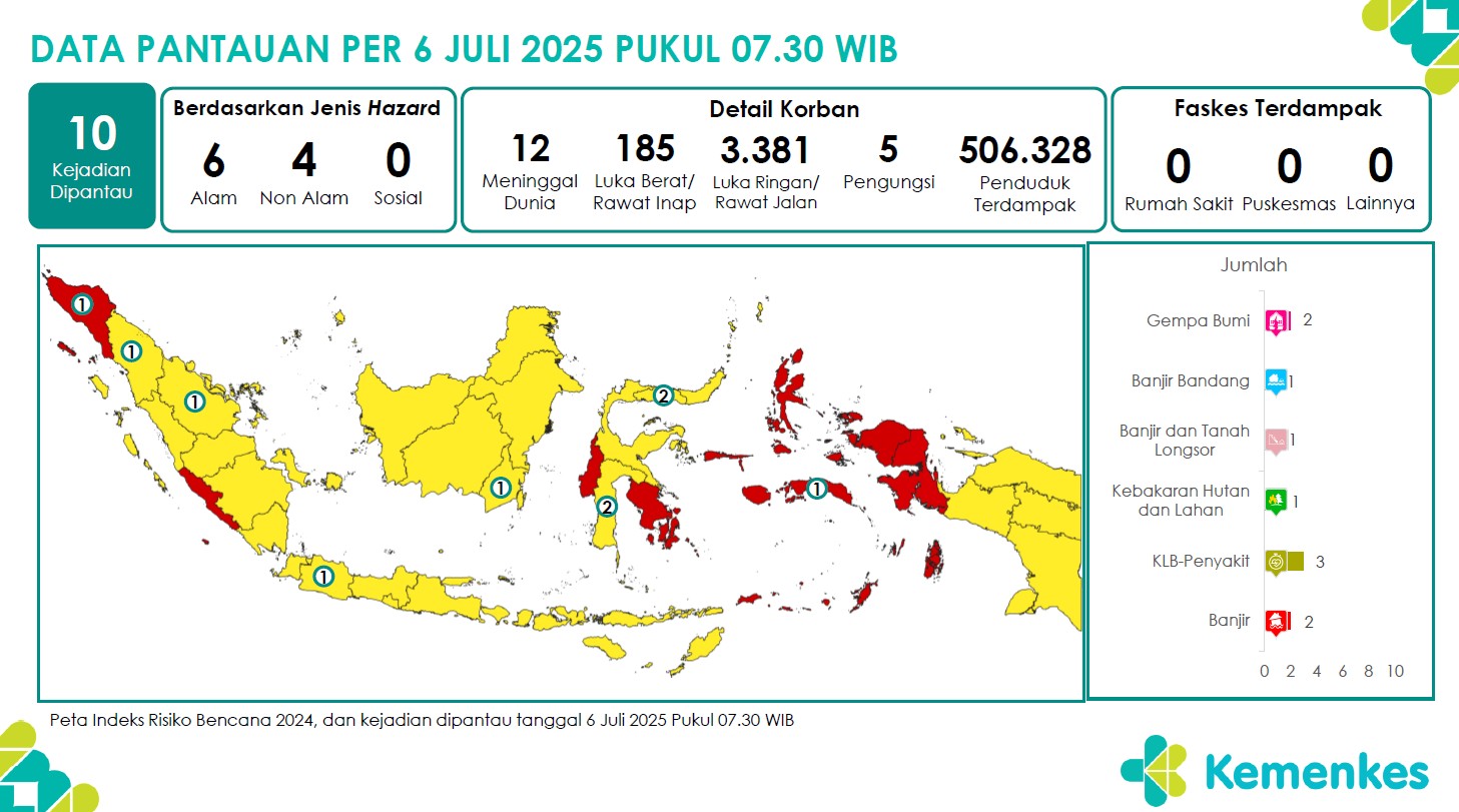 Disini anda dapat mengunduh laporan pemantauan harian berpotensi kejadian Krisis Kesehatan tanggal 6 Juli 2025