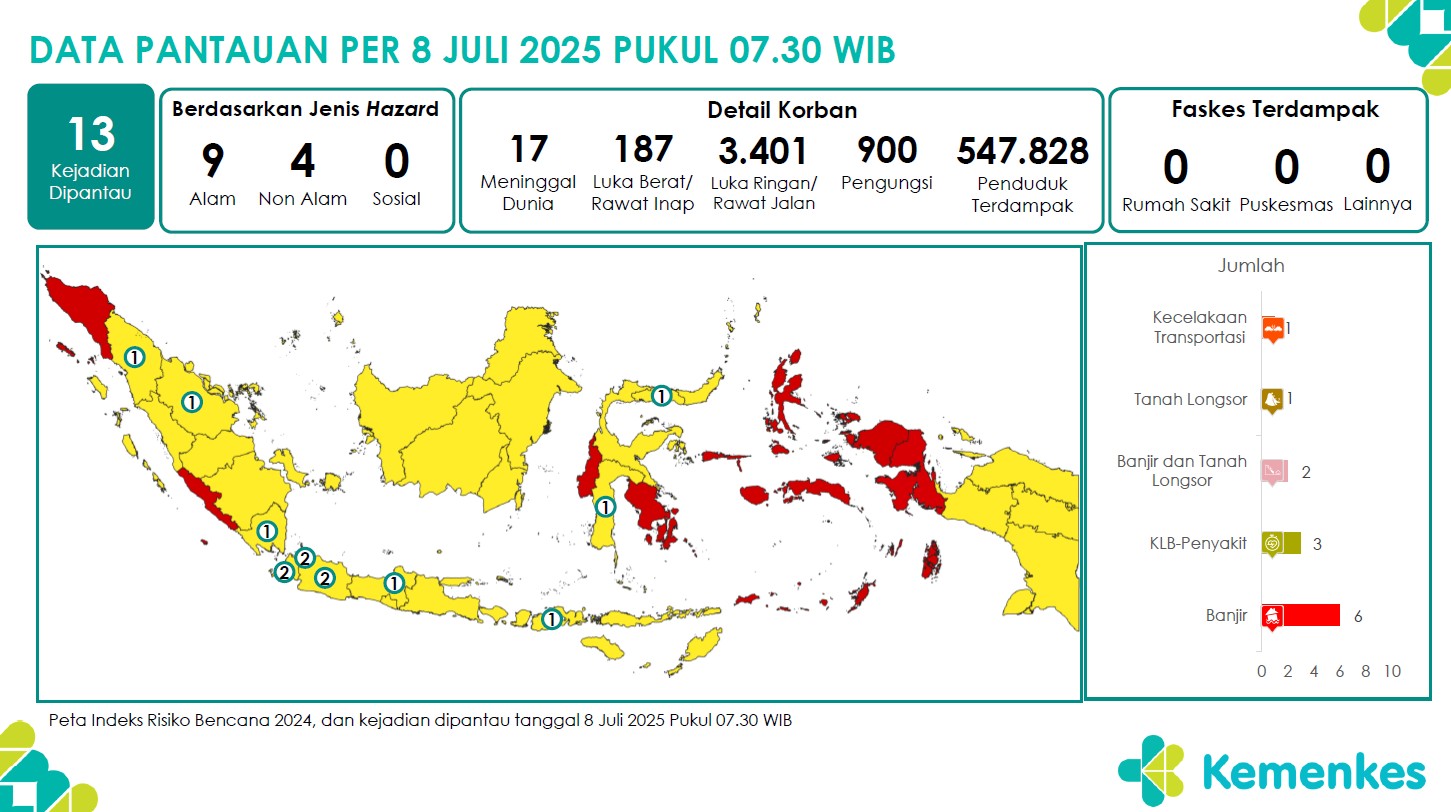 Disini anda dapat mengunduh laporan pemantauan harian berpotensi kejadian Krisis Kesehatan tanggal 8 Juli 2025