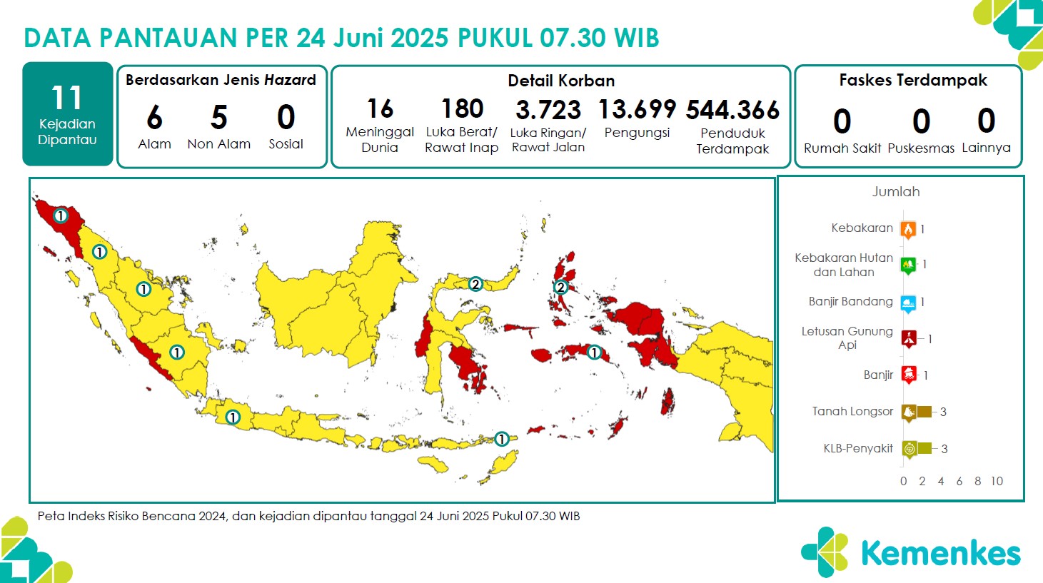 Disini anda dapat mengunduh laporan pemantauan harian berpotensi kejadian Krisis Kesehatan tanggal 24 Juni 2025