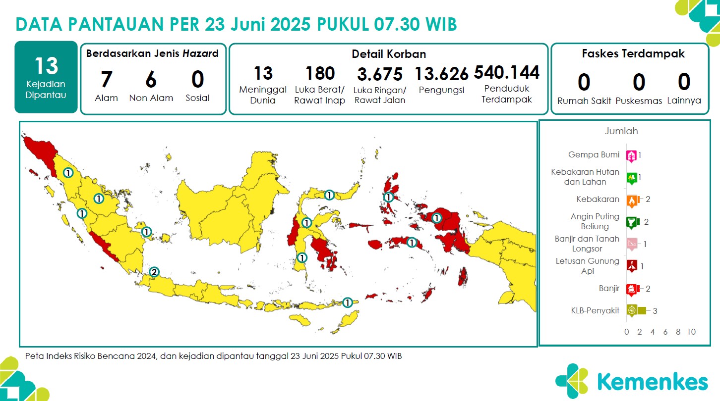 Disini anda dapat mengunduh laporan pemantauan harian berpotensi kejadian Krisis Kesehatan tanggal 23 Juni 2025