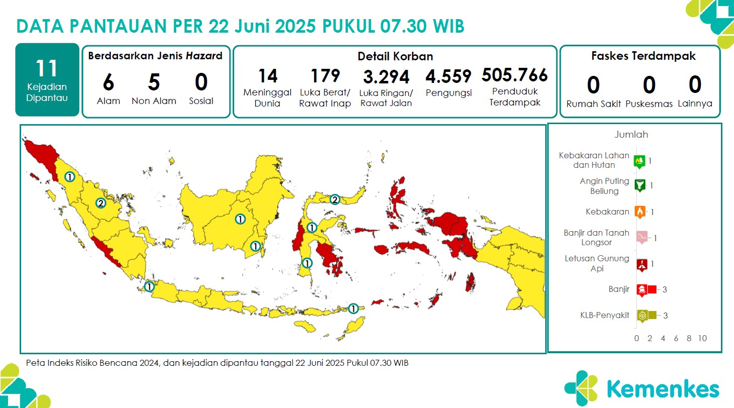 Disini anda dapat mengunduh laporan pemantauan harian berpotensi kejadian Krisis Kesehatan tanggal 22 Juni 2025