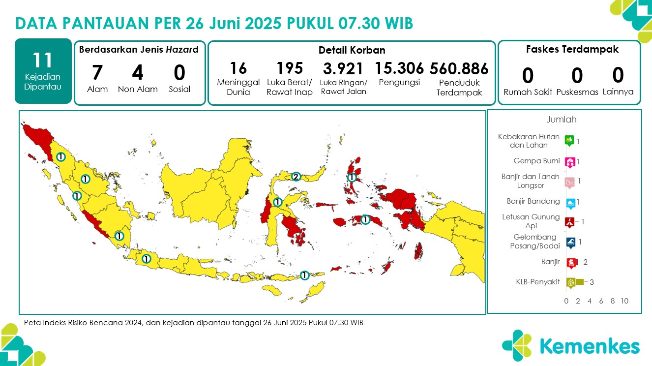 Disini anda dapat mengunduh laporan pemantauan harian berpotensi kejadian Krisis Kesehatan tanggal 25 Juni 2025