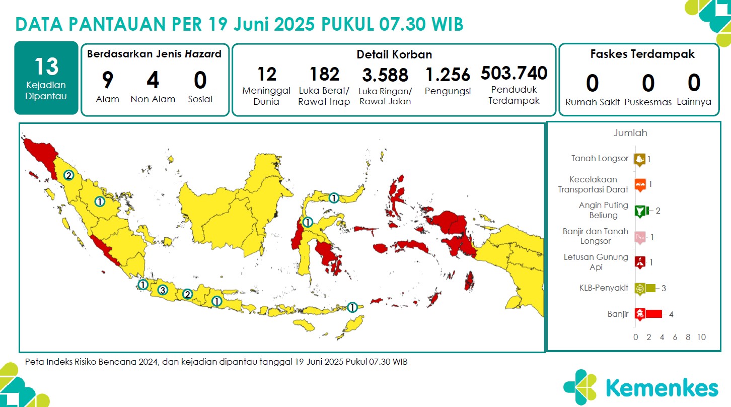 Disini anda dapat mengunduh laporan pemantauan harian berpotensi kejadian Krisis Kesehatan tanggal 19 Juni 2025