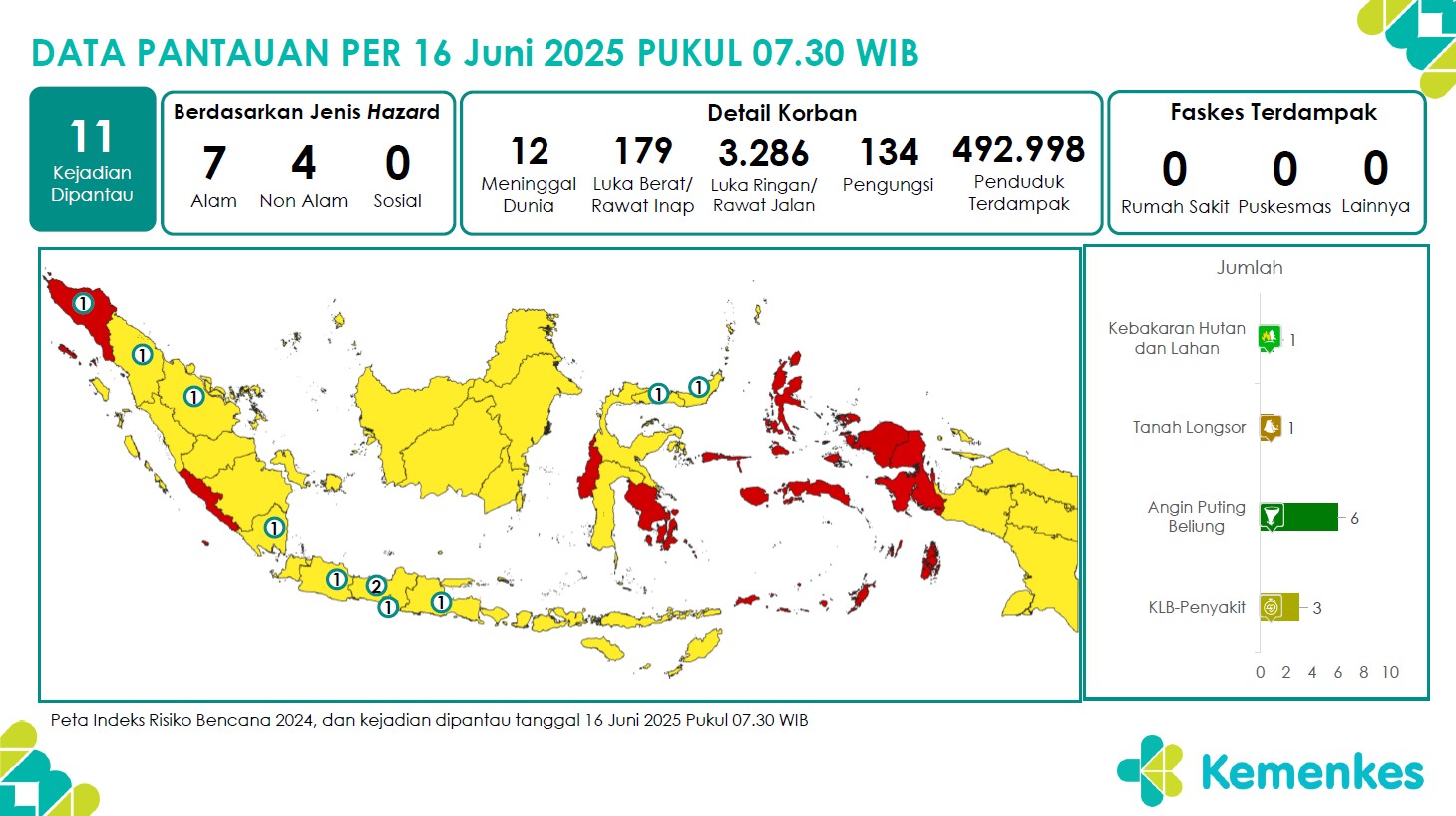 Disini anda dapat mengunduh laporan pemantauan harian berpotensi kejadian Krisis Kesehatan tanggal 16 Juni 2025