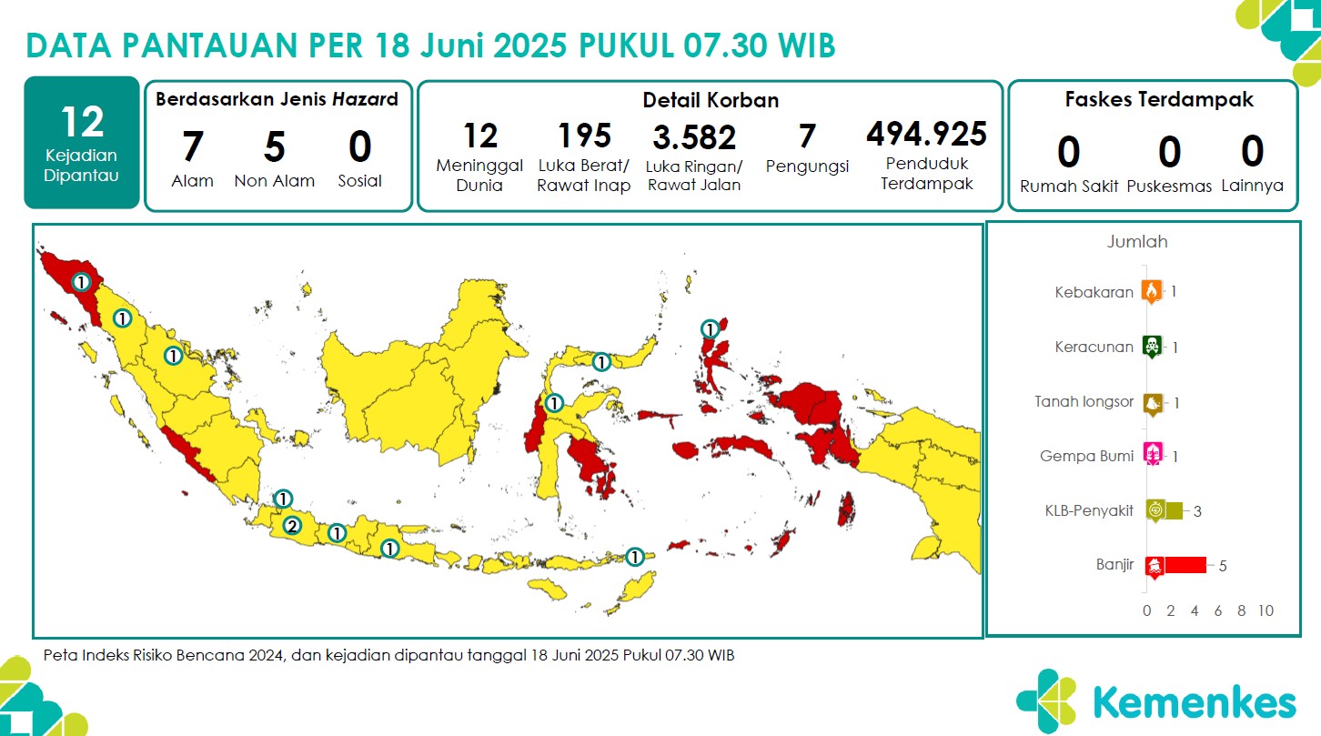 Disini anda dapat mengunduh laporan pemantauan harian berpotensi kejadian Krisis Kesehatan tanggal 18 Juni 2025