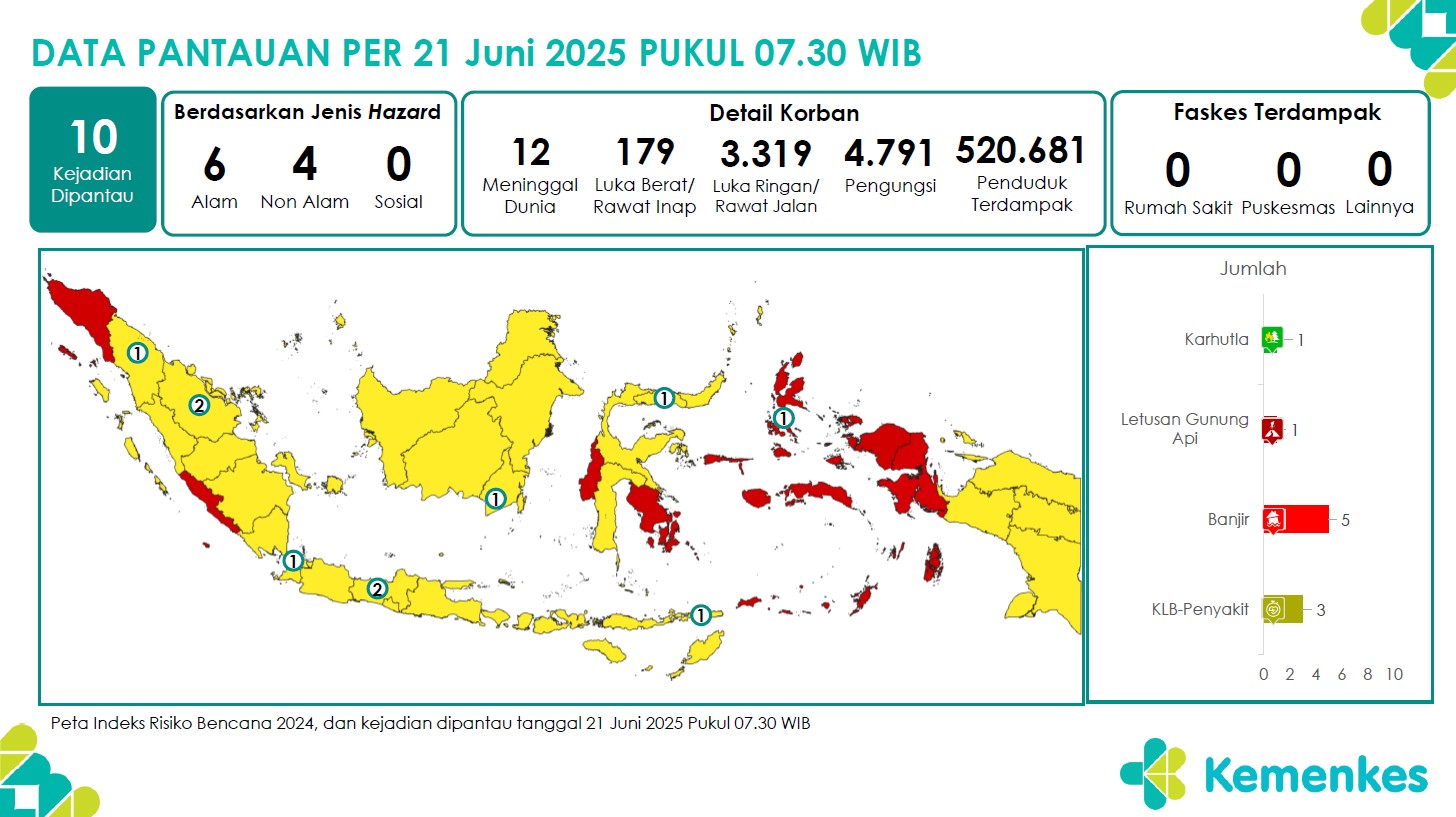Disini anda dapat mengunduh laporan pemantauan harian berpotensi kejadian Krisis Kesehatan tanggal 21 Juni 2025