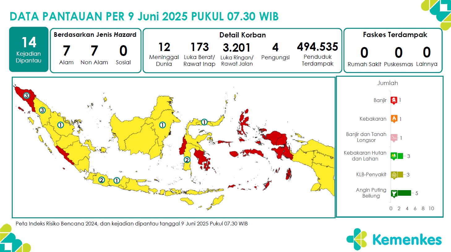 Disini anda dapat mengunduh laporan pemantauan harian berpotensi kejadian Krisis Kesehatan tanggal 9 Juni 2025