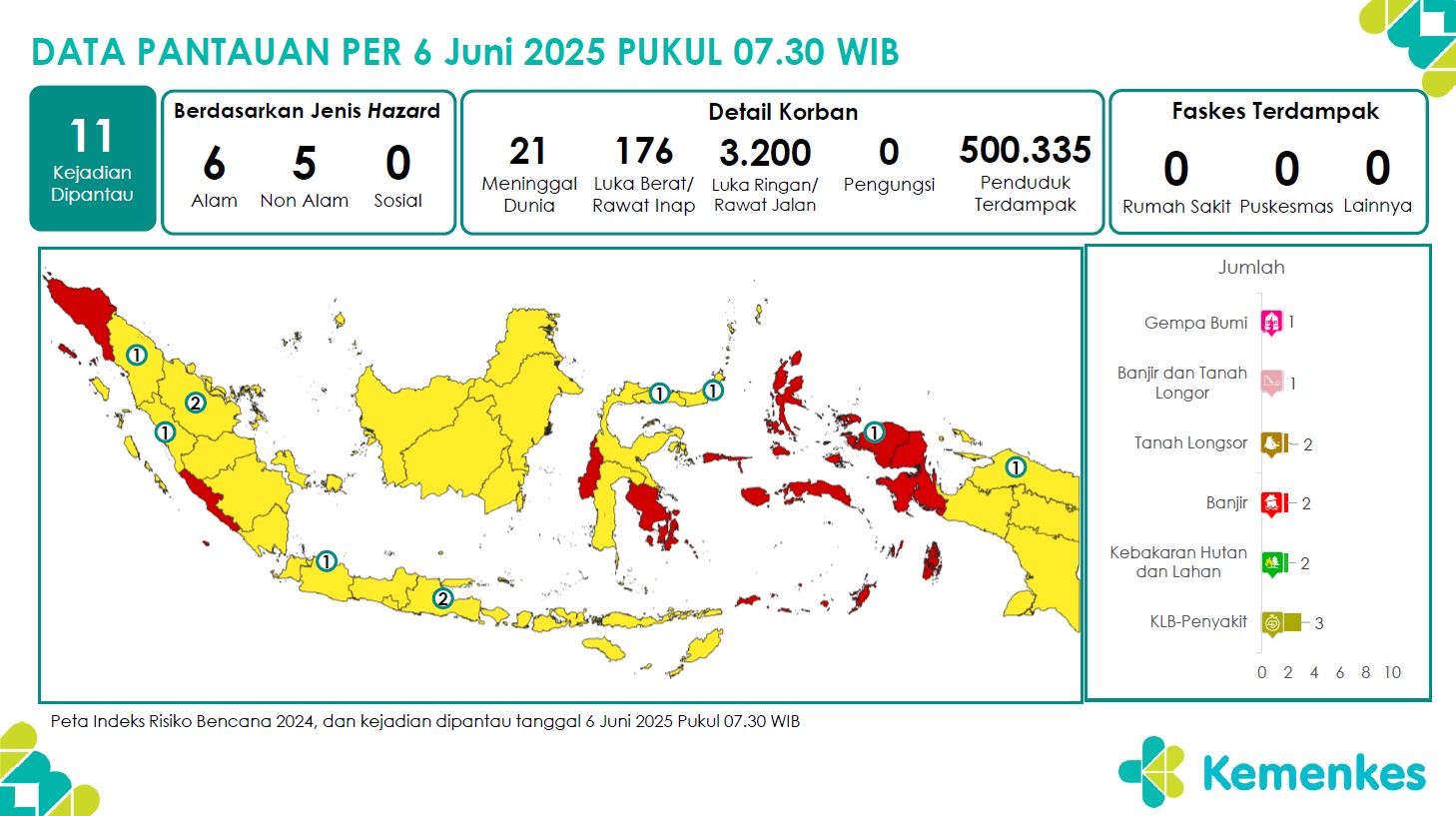 Disini anda dapat mengunduh laporan pemantauan harian berpotensi kejadian Krisis Kesehatan tanggal 6 Juni 2025