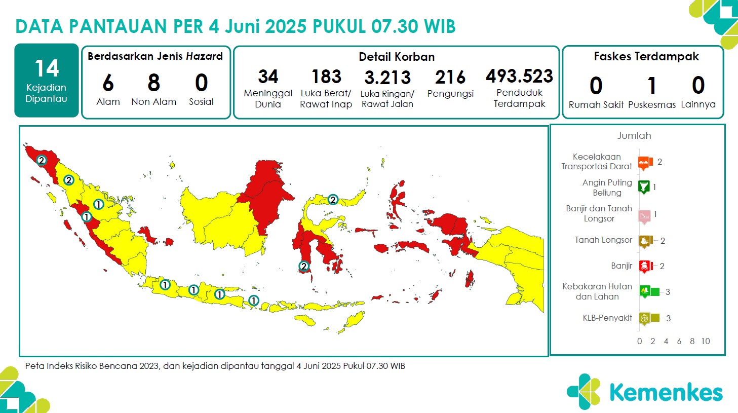 Disini anda dapat mengunduh laporan pemantauan harian berepotensi kejadian Krisis Kesehatan tanggal 4 Juni 2025