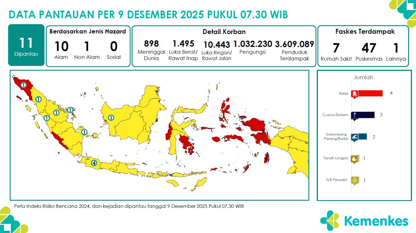 Disini anda dapat mengunduh laporan pemantauan harian berpotensi kejadian Krisis Kesehatan tanggal 9 Desember 2025 Lihat Laporan Pemantauan Harian Pusat Krisis Kesehatan 9 Desember 2025
