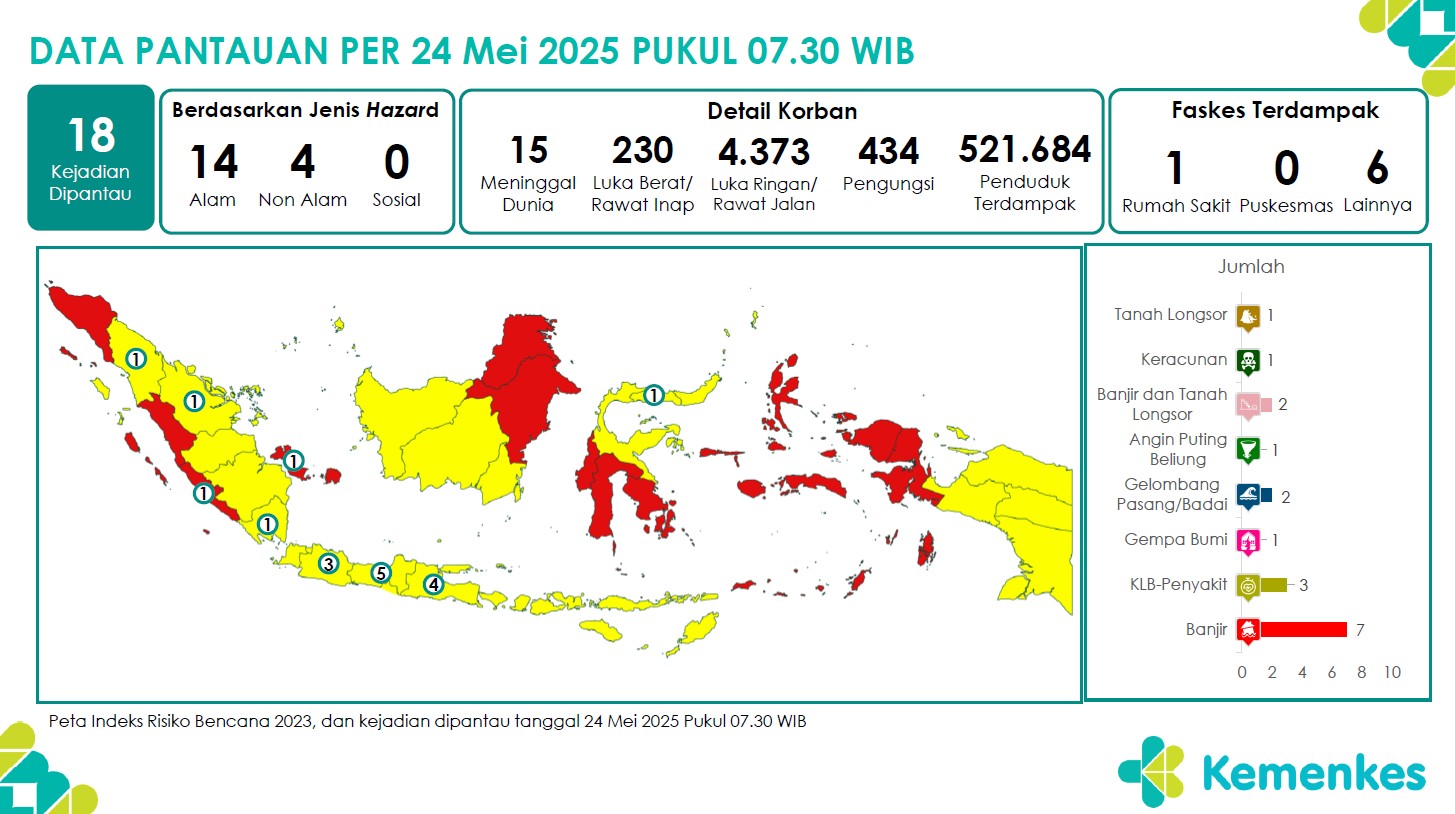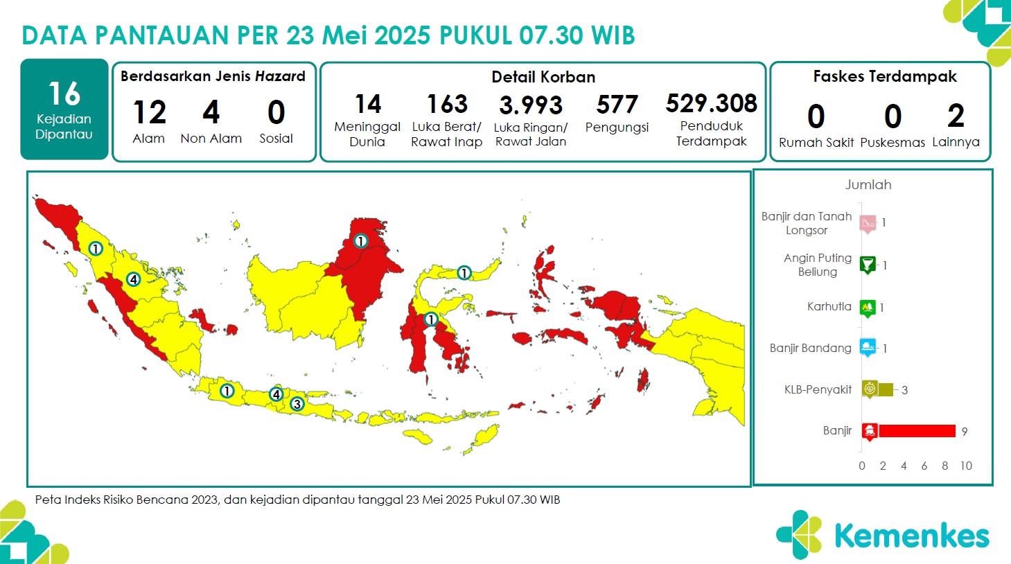 Disini anda dapat mengunduh laporan pemantauan harian berepotensi kejadian Krisis Kesehatan tanggal 23 Mei 2025