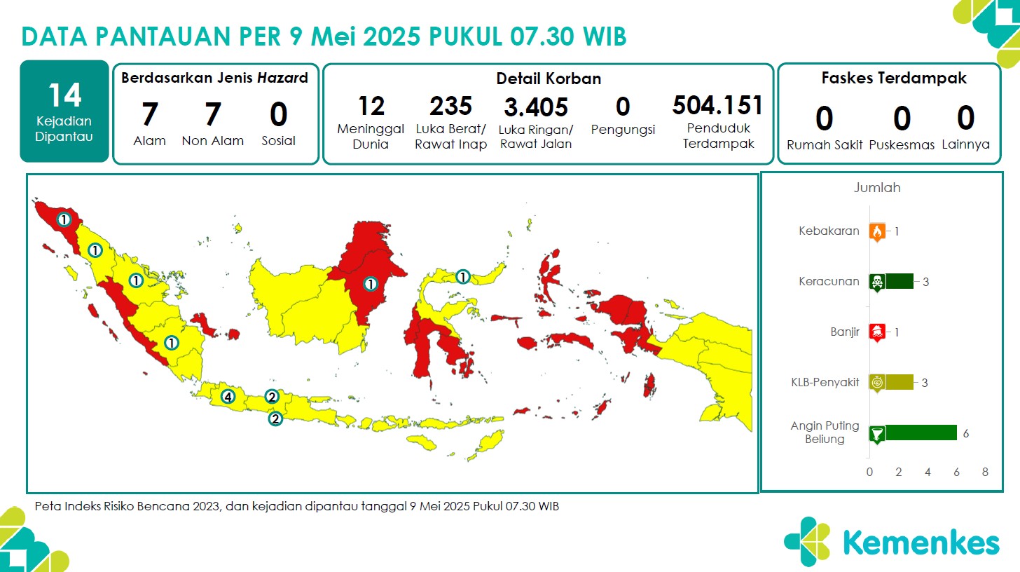 Disini anda dapat mengunduh laporan pemantauan harian berepotensi kejadian Krisis Kesehatan tanggal 9 Mei 2025