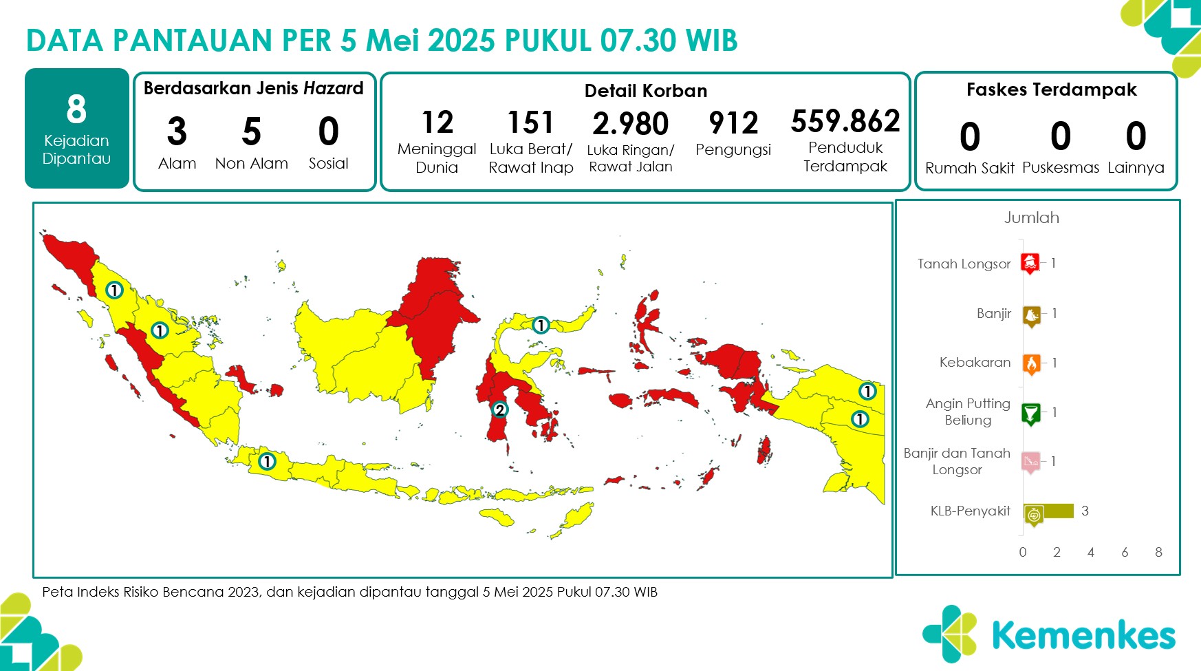 Disini anda dapat mengunduh laporan pemantauan harian berepotensi kejadian Krisis Kesehatan tanggal 5 Mei 2025