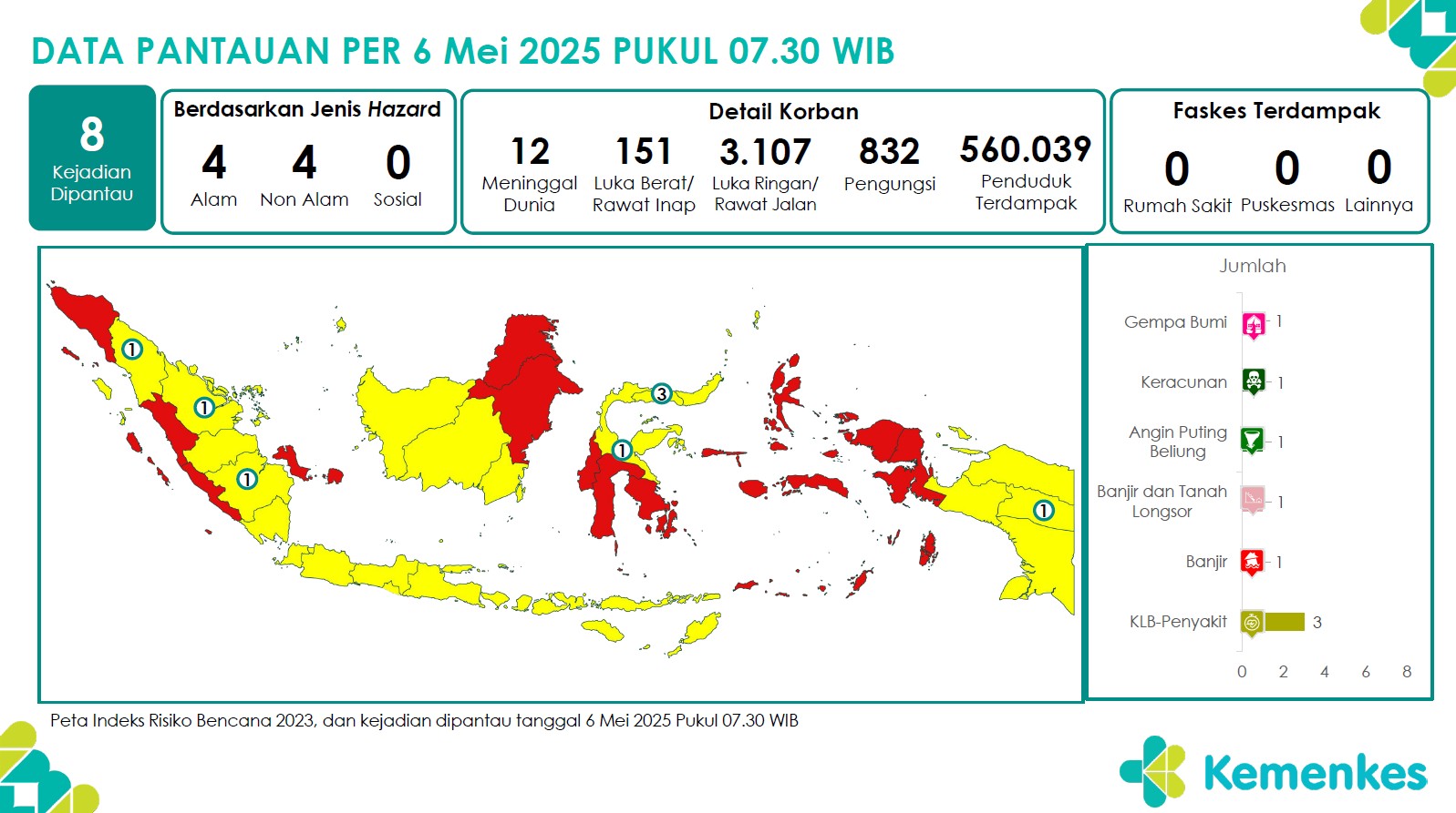 Disini anda dapat mengunduh laporan pemantauan harian berepotensi kejadian Krisis Kesehatan tanggal 6 Mei 2025