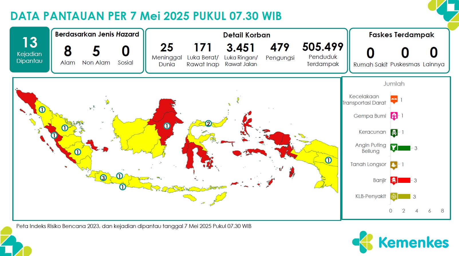Disini anda dapat mengunduh laporan pemantauan harian berepotensi kejadian Krisis Kesehatan tanggal 7 Mei 2025