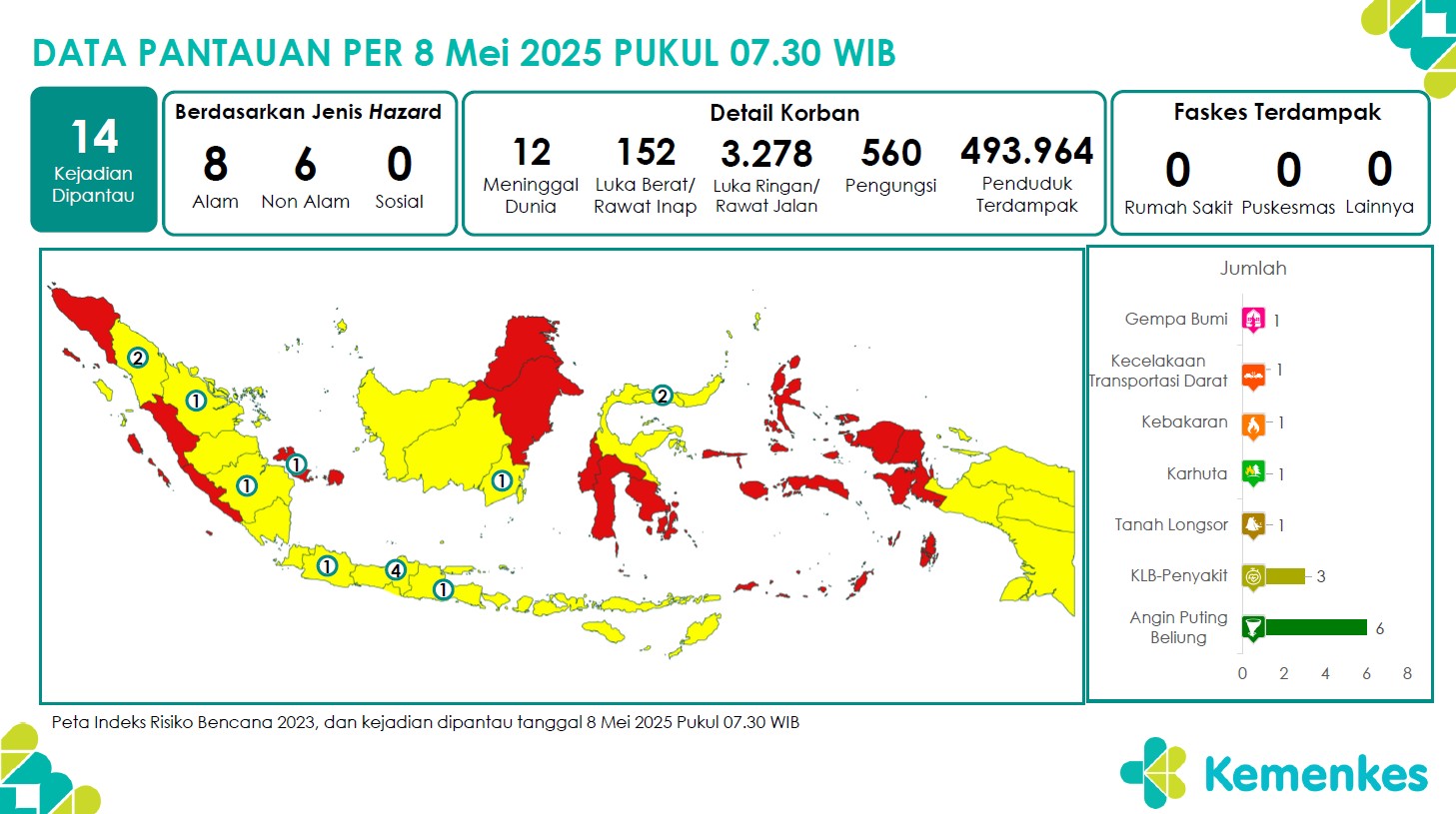 Disini anda dapat mengunduh laporan pemantauan harian berepotensi kejadian Krisis Kesehatan tanggal 8 Mei 2025