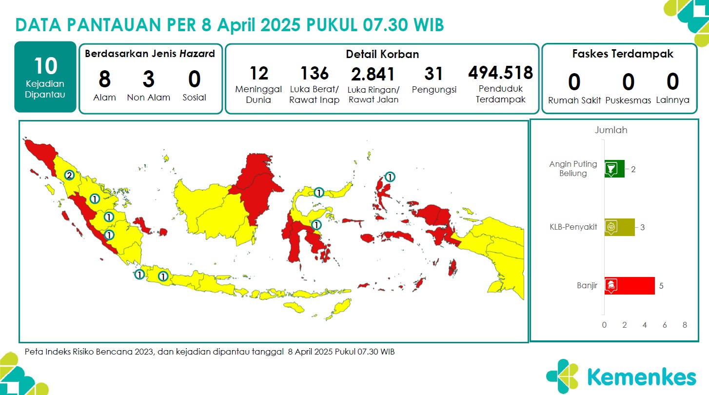 Disini anda dapat mengunduh laporan pemantauan harian berepotensi kejadian Krisis Kesehatan tanggal 8 April 2025