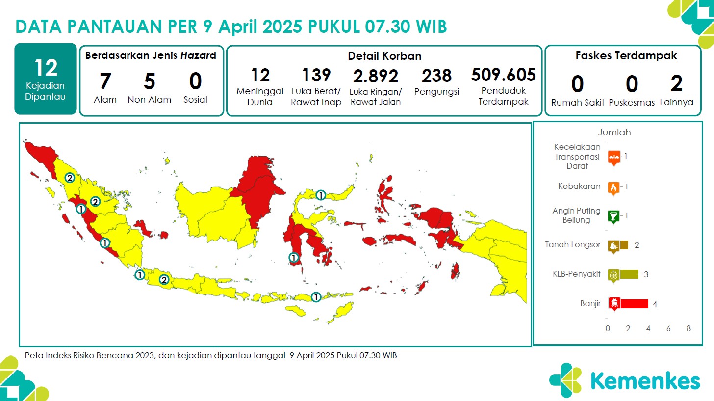 Disini anda dapat mengunduh laporan pemantauan harian berepotensi kejadian Krisis Kesehatan tanggal 9 April 2025