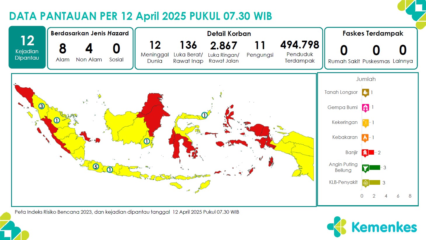 Disini anda dapat mengunduh laporan pemantauan harian berepotensi kejadian Krisis Kesehatan tanggal 12 April 2025