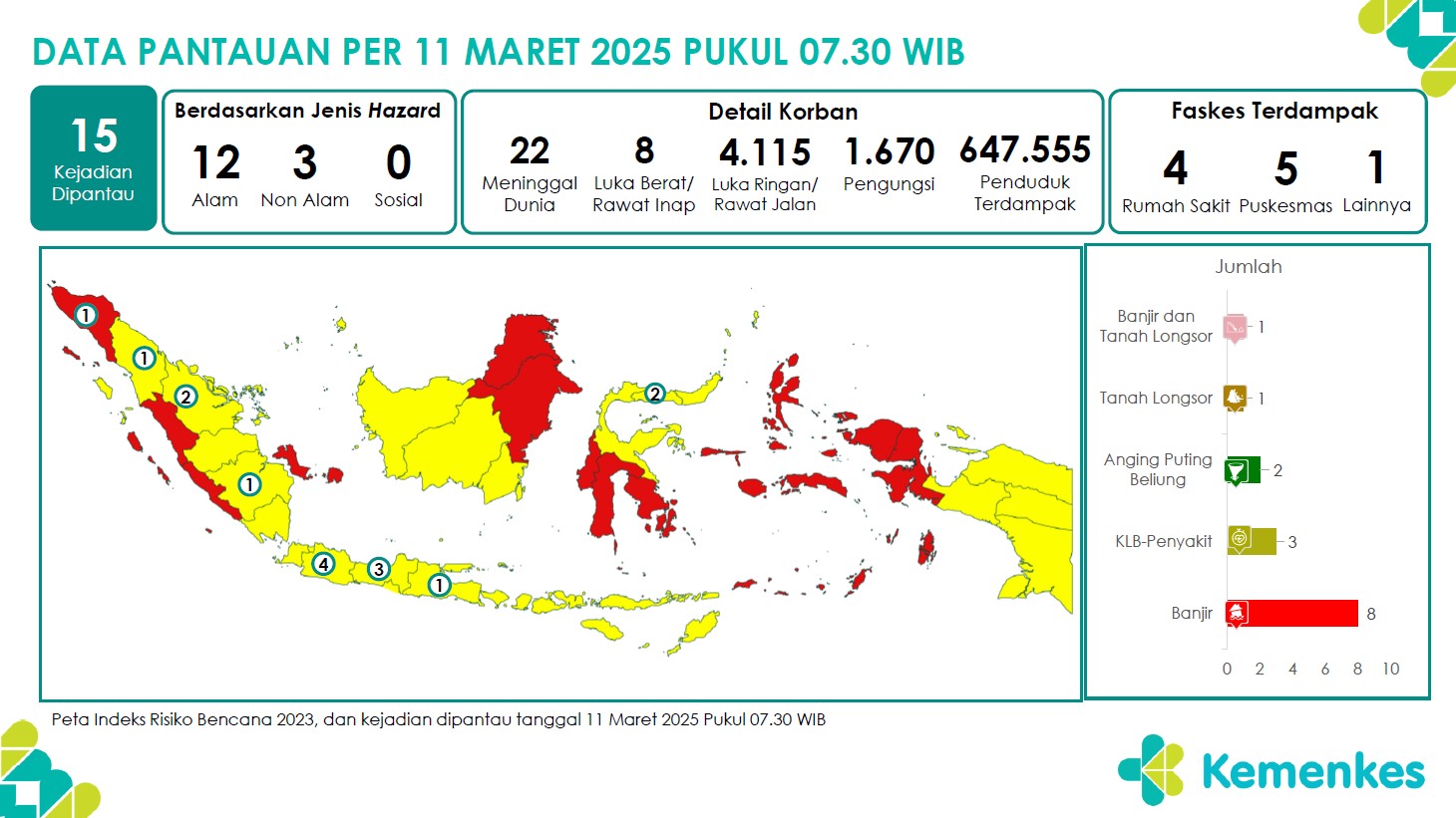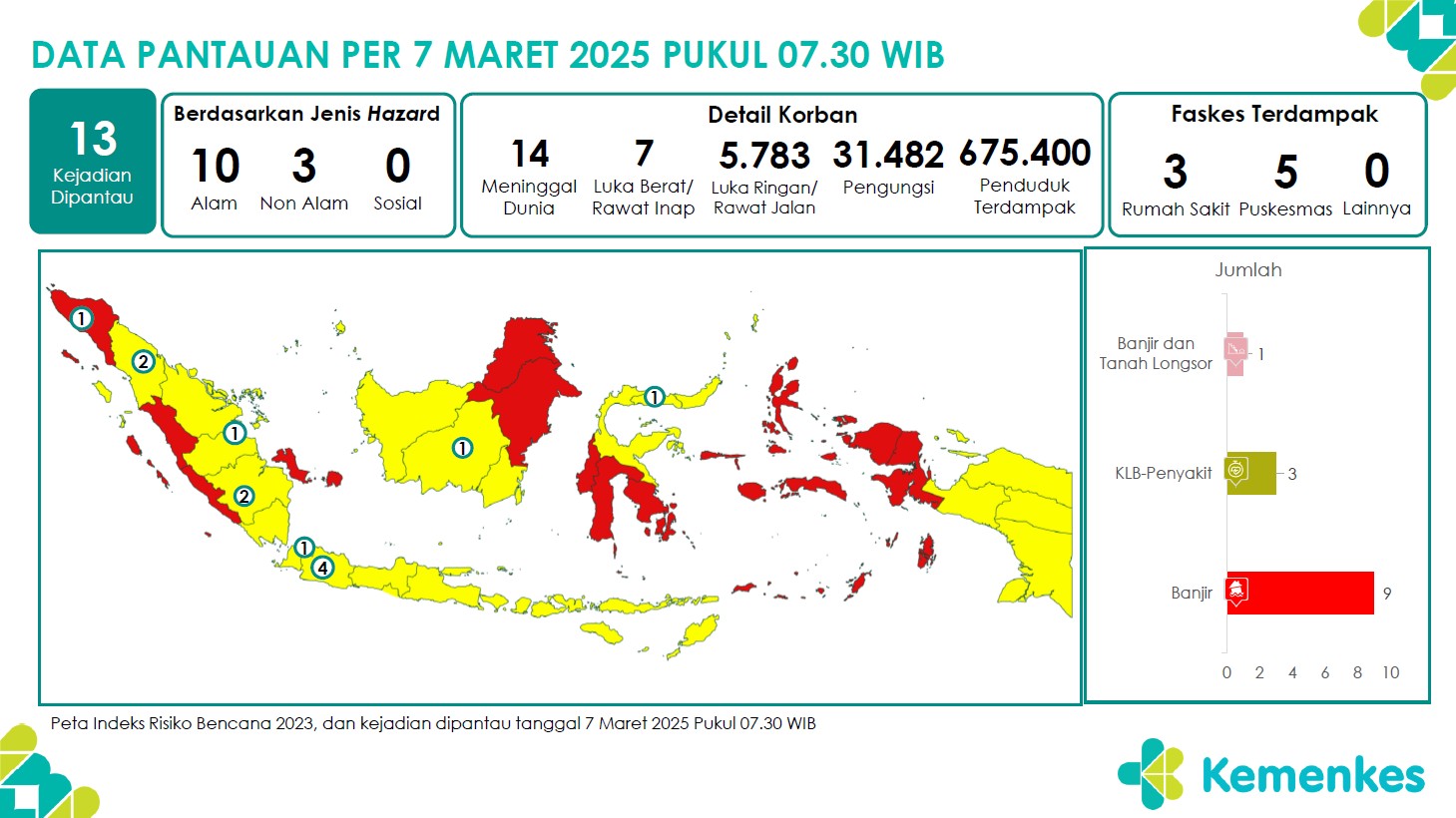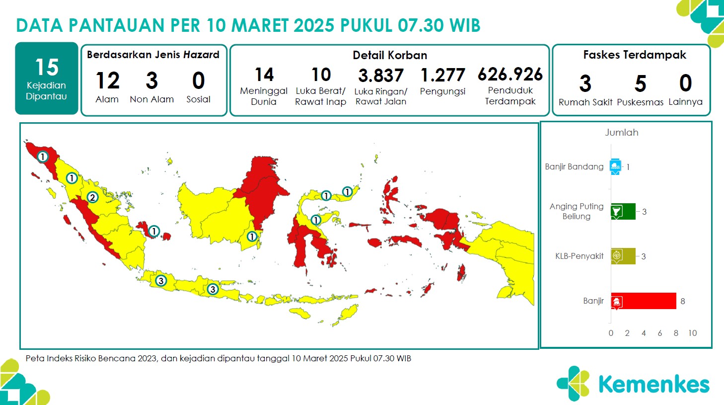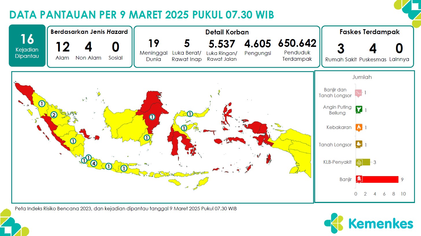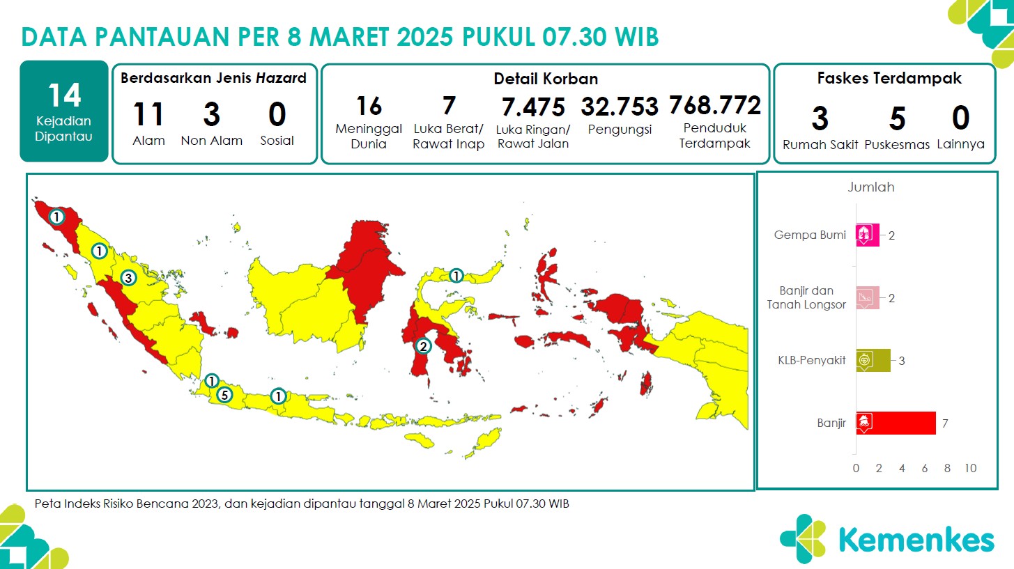 Disini anda dapat mengunduh Laporan Pemantauan Harian Kejadian Krisis Kesehatan Pusat Krisis Kesehatan Kementerian Kesehatan tanggal 8 Maret 2025 pukul 07.30 WIB hingga 9 Maret 2025 pukul 07.30 WIB...