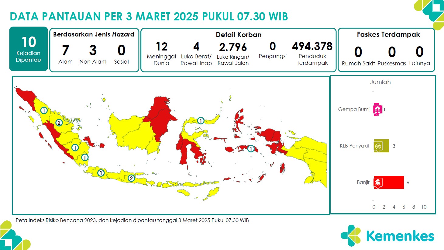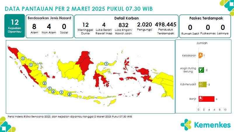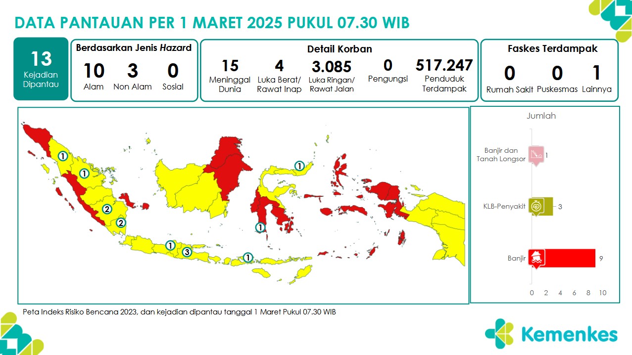 Disini anda dapat mengunduh Laporan Pemantauan Harian Kejadian Krisis Kesehatan Pusat Krisis Kesehatan Kementerian Kesehatan tanggal 1 Maret 2025 pukul 07.30 WIB hingga 2 Maret 2025 pukul 07.30 WIB...