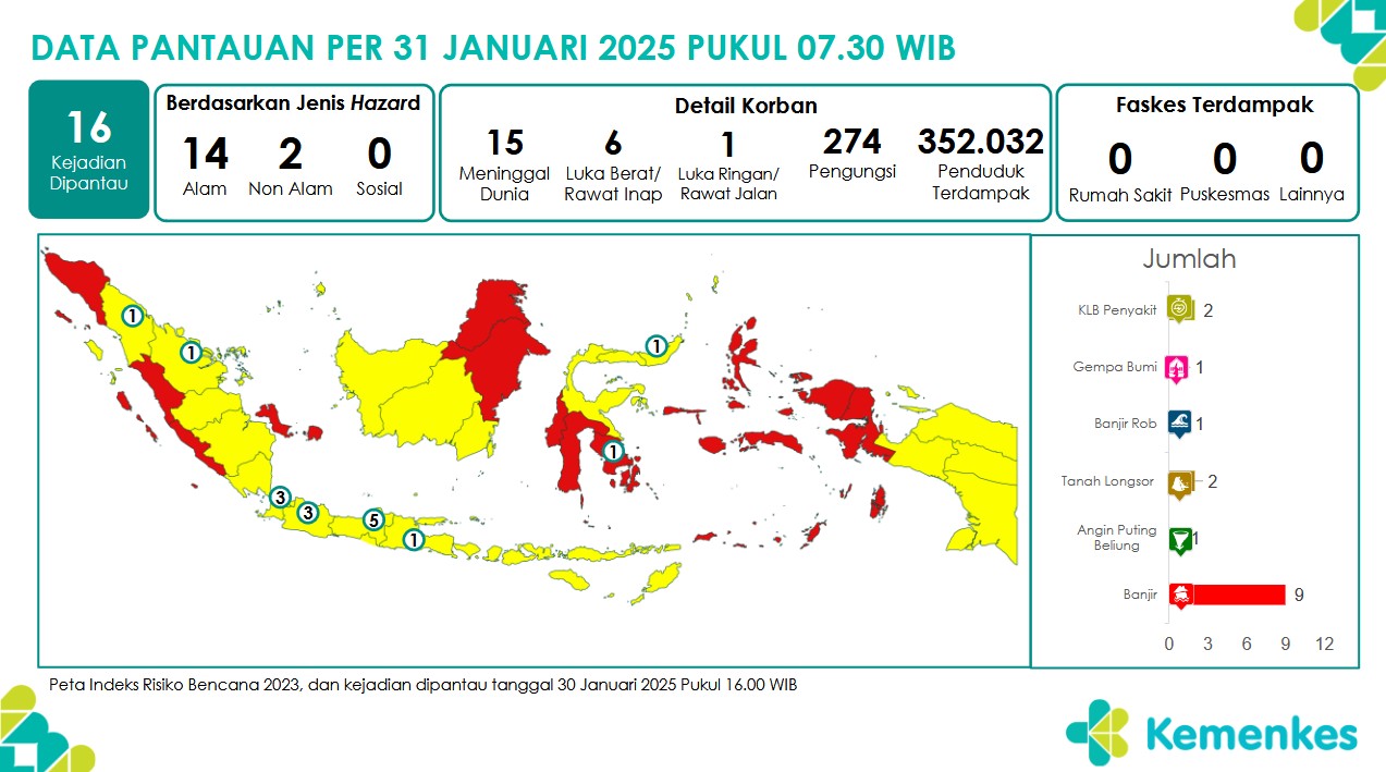 Disini anda dapat mengunduh Laporan Pemantauan Harian Kejadian Krisis Kesehatan Pusat Krisis Kesehatan Kementerian Kesehatan tanggal 29 Januari 2025 pukul 07.30 WIB hingga 30 Januari 2025 pukul 07....